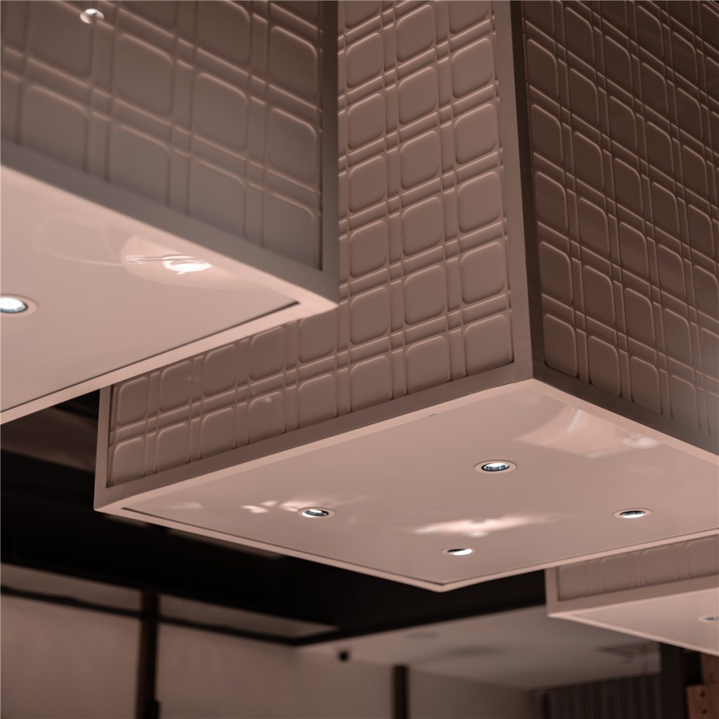 - Drawing from tofu’s translucence and purity, suspended installations resemble delicate tofu blocks, creating a unique visual focus.