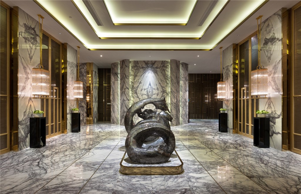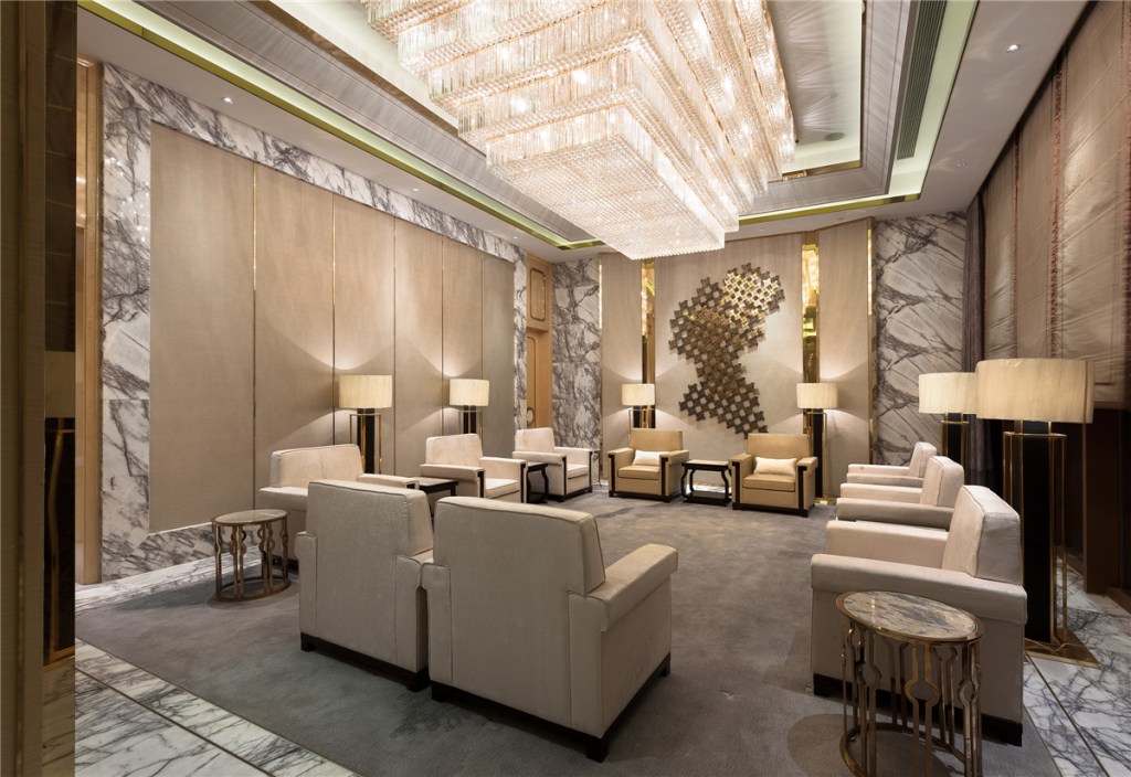 The design incorporates international aesthetics through metal accents, rich colors, and diverse forms, while subtly embodying the Chinese spirit of “harmony” and “nobility.” The result is a space that feels grounded, sophisticated, and timeless. This design philosophy resonates with the values and aesthetic preferences of the club’s elite target audience