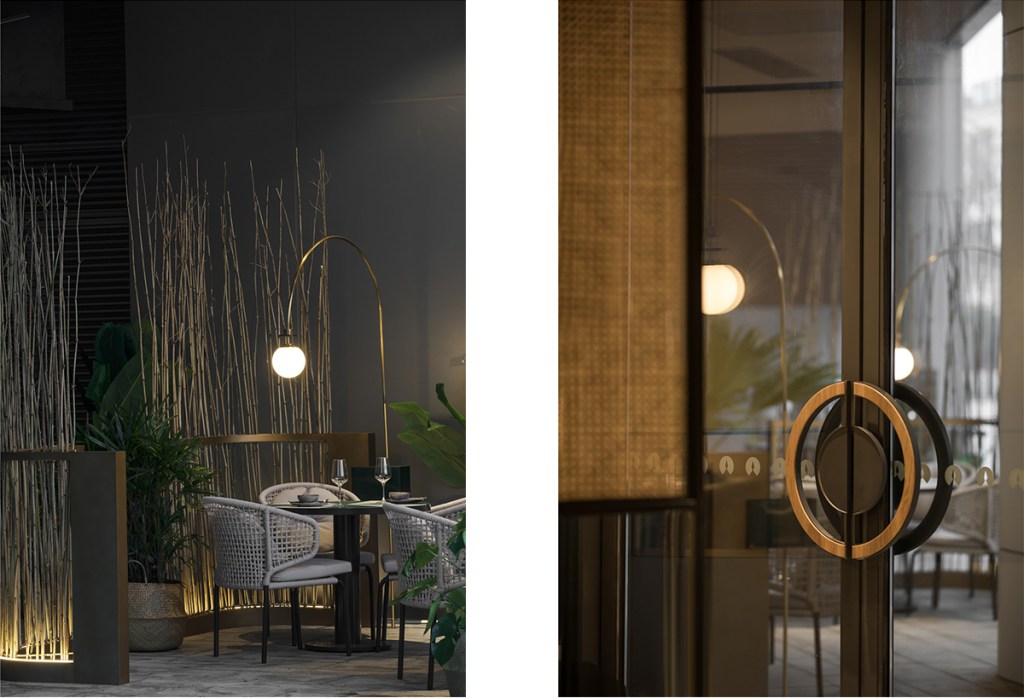 - Outdoor Seating: Surrounded by rattan elements, the area resembles a tropical jungle, with diners semi-hidden among the “hanging vines.” At night, the dappled light and shadows enhance the space’s relaxing ambiance.