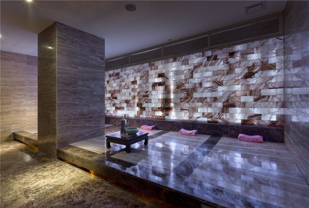 The walls feature wave-like reliefs, representing water in a modern context and emphasizing the thematic focus. - Cultural Enhancements: