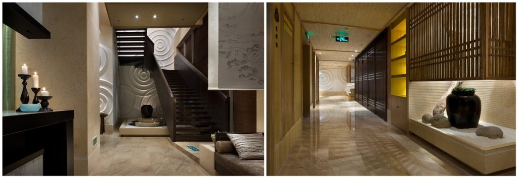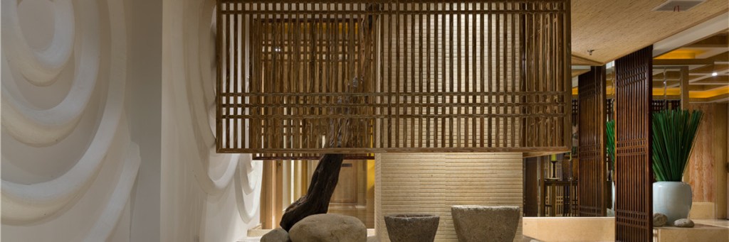 Materials such as reed curtains, ink-style silk screens, and classic landscape